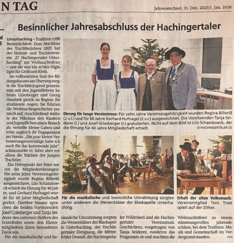Obenstehend der Zeitungsartikel zu unserer Weihnachtsfeier, erschienen im Münchner Merkur am 31. Dezember 2025.